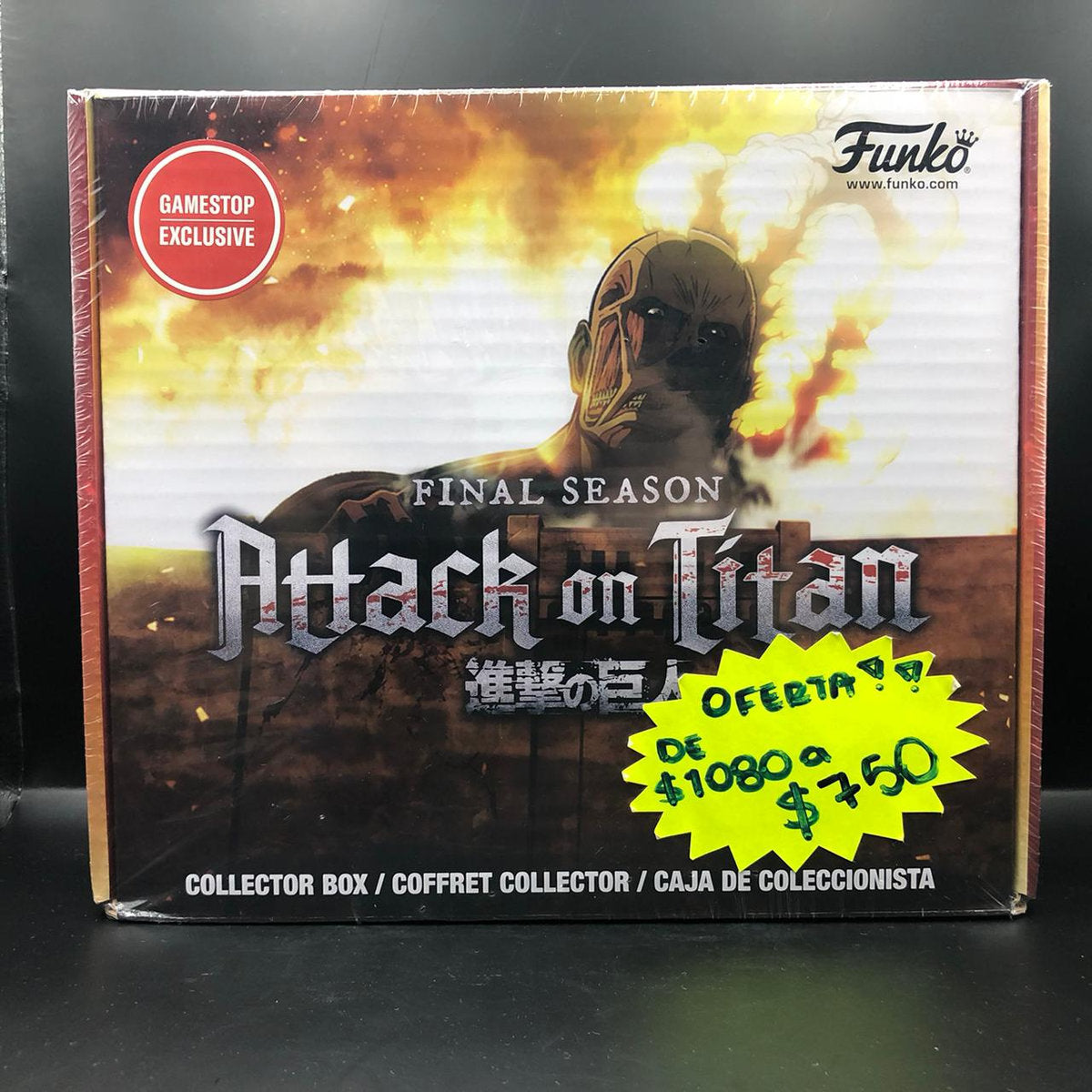 💬 Enviar pedido por WhatsAppCaja de coleccionista de Funko Pop de la temporada final de Attack on Titan. La caja es una exclusiva de GameStop y presenta una imagen de un titán y el logotipo de la serie. Esta caja de Funko Pop es parte de una serie de coleccionables basados en el anime y manga de Attack on Titan, que ha ganado popularidad a nivel mundial. Los coleccionables de Funko Pop son conocidos por sus diseños estilizados y su atractivo para los fans.