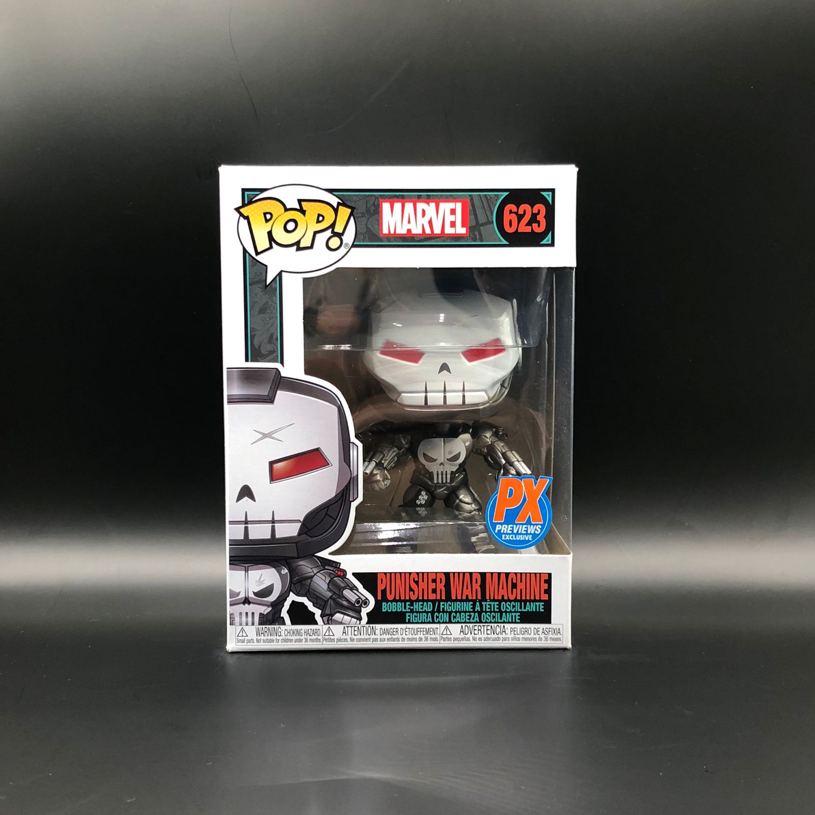 💬 Enviar pedido por WhatsAppFunko Pop de Punisher War Machine, una versión de Frank Castle (The Punisher) con la armadura de War Machine. Esta figura, número 623 de la línea Marvel, es una exclusiva PX Previews. La figura tiene un diseño estilizado, con una cabeza grande y un cuerpo pequeño, característico de los Funko Pop!. La figura viene en una caja con ventana, ideal para coleccionistas. La figura mide aproximadamente 3.75 pulgadas de alto.