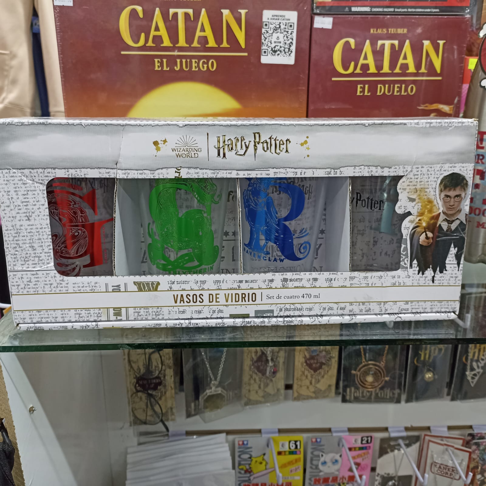 💬 Enviar pedido por WhatsAppjuego de cuatro vasos de vidrio de la marca Harry Potter con licencia oficial.